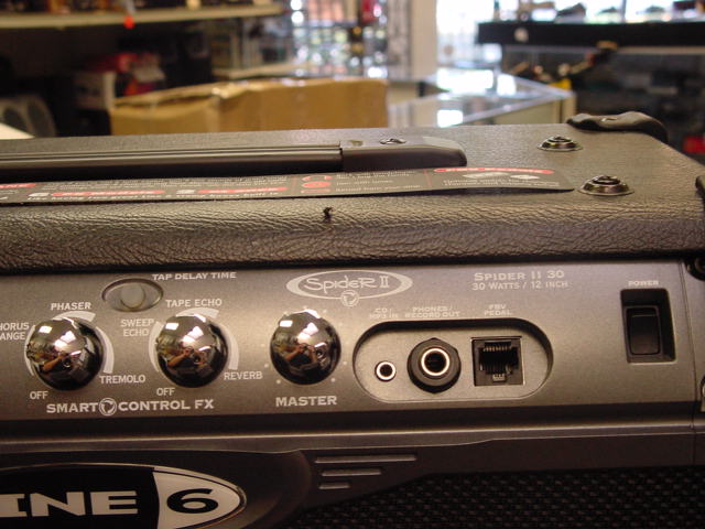 ![]() Spider II 30 by LINE 6 Spider® II 30 gives you four independent amp channel models to punish your audience with. The Clean, Crunch, Metal, and Insane channels come preset with tone and effects settings ready to rumble wherever and whenever you are. This crafty beast also features a dedicated distortion boost, noise gate, and the radical Smart Control FX. FEATURES: 4 amp models that deliver a complete range from Clean to Insane 6 Smart Control FX (2 simultaneous) including Phaser, Chorus/Flanger, Tremolo, Sweep Echo, Tape Echo, and Reverb. 4 User-programmable channels Tap Tempo CD/MP3 input jack Headphone/Direct Out for practice or recording Custom Celestion 12-inch Speaker Footswitch jack for FBV2 and FBV4 floor controller AMP MODELS: Clean This amp model gives you everything from crisp, shimmering clean tones all the way to warm vintage tones. Crunch We based this model on* a '68 Marshall® "Plexi" 100-watt with a few added extras. We threw in the Variac "brown sound" trick on top of jumping the input channels! Now you're on fire! Metal This monster truck of tone delivers a tight bottom-end that’s big, powerful, and fast. Use this amp model to get a punch, high-gain metal sound. Insane Our goal with Insane was to provide you with as much distortion as possible short of complete meltdown. Crank up the Drive control and prepare to dominate. EFFECTS: With six different effect types (two simultaneous), getting the right sound is easy. Spider II 30 packs six Smart Control FX including, Phaser, Chorus/Flanger, Tremolo, Sweep Echo, Tape Echo, and Reverb. All effects can be easily tweaked and delay times can be adjusted using tap tempo. |