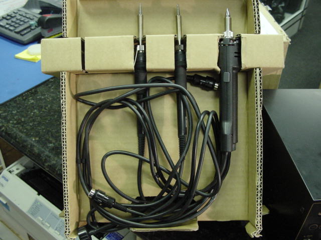 The HAKKO 703 rework system has two soldering and one desoldering station with built in vacuum pump. Solder and desolder with the same station.